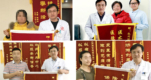 患者康复后,送锦旗给刘主任,表示感谢